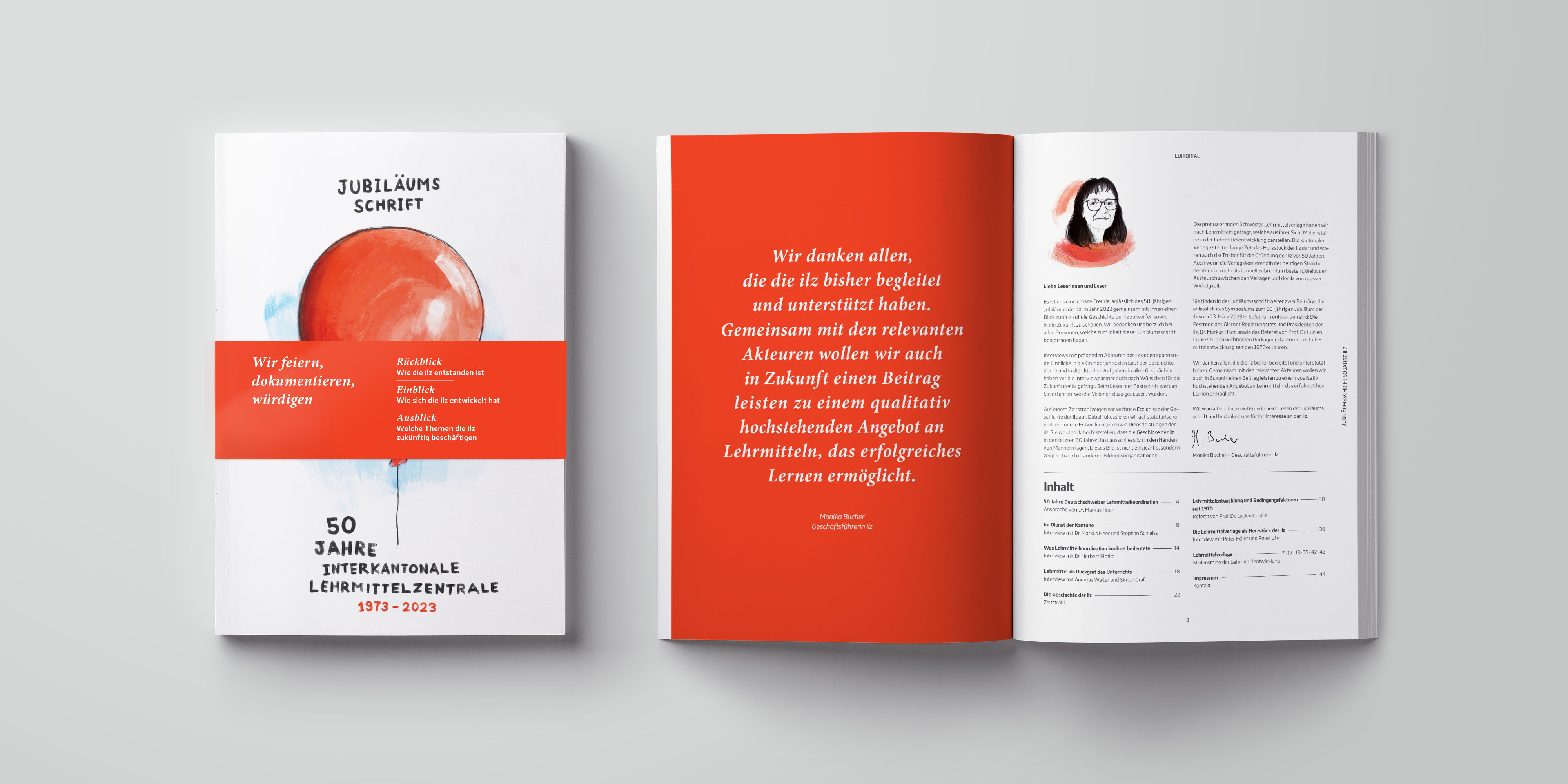 Wir freuen uns, die ilz interkantonale Lehrmittel Zentrale bei ihrem Jubiläum begleitet zu haben und gratulieren ihnen herzlich zu diesem Meilenstein! Von Vorteil GmbH hatte das privilegierte Vergnügen, die Jubiläumsschrift für diesen besonderen Anlass zu erstellen. Die Herausforderung bestand darin, die verschiedenen Interviewpartner in der Schrift bestmöglich darzustellen. Mit unserem kreativen Konzept haben wir uns dafür entschieden, sie in Form von Illustrationen zu präsentieren. Vom Konzept über das Layout bis hin zur Illustration hatten wir alles inhouse im Griff. Unser talentiertes Team von Designern und Illustratoren arbeitete eng mit der ilz zusammen, um eine einzigartige und ansprechende Jubiläumsschrift zu schaffen. Jeder Interviewpartner wurde liebevoll illustriert, um seine Persönlichkeit und seine Geschichte auf einzigartige Weise zum Ausdruck zu bringen. Von Vorteil GmbH bedankt sich herzlich bei der ilz interkantonale Lehrmittel Zentrale für das Vertrauen in unser Team. Wir wünschen Ihnen weiterhin viel Erfolg und freuen uns darauf, Sie bei zukünftigen Projekten zu unterstützen.